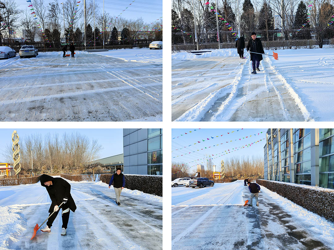 2月13日,虎年首场降雪如约而至,洋洋洒洒的雪花很快将乐玩首页(中国)网页版集团各厂院路面覆盖。集团各子公司以雪为令,立即行动起来。各单位员工在相关领导带领下,手拿铁锹、扫帚、簸箕等工具,对办公楼门口和厂区内重要点位、路面进行积雪大清扫。积雪的清除,为员工和车辆出入提供了安全保障。寒风袭袭,尽管大家冻得手脚冰凉,但全体员工齐心协作,相互配合,一派热火朝天的除雪场景,甚是鼓舞人心。